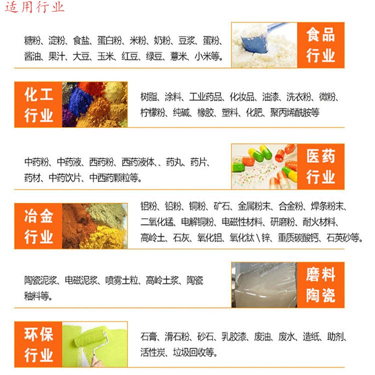 應用行業:石油化工、原料藥、塑料、碳黑、礦業、食品添加劑、水泥