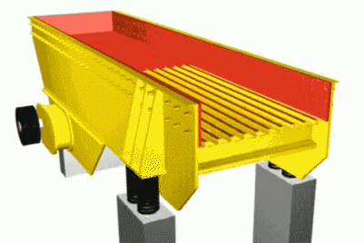 棒條振動給料機主要由一對性能參(cān)數相同的振動電機爲激振源,當兩台振動電機以相同的角速度作反向運轉時,其偏心塊所産生的慣性力在特定的相位重複疊加或抵消。從而産生巨大的合成激振動力,使機體在支承彈簧上作強制振動,並(bìng)以此振動爲動力,帶動物料在料槽上作滑動及抛擲運動,從而使物料不斷前移而達到給料目的。當物料通過槽體上的篩條時,較小料可透過篩條間隙而落下,不經過下道的破碎工序,起到篩分的效果。
