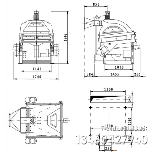 吹式比重去石機 1.進料口,2.進料鬥;3.進料調節手輪;4.導風闆, 5.出料口.6.進風調節裝置;7.風機;8.偏心傳動機構;9.出石口;10.精選室;11.吊杆;12.勻風闆: 13.去石篩面;14.緩沖勻流闆吸式比重去石機其結構與吹式基本相同,隻是自身不帶風機,在去石篩面上裝有氣密良好的吸風罩及吸風管,與加工廠風網的風機相接,作業時塵土不外揚,因而使用較多。爲簡化結構和便於(yú)制作,有些國家的吸式比重去石機的去石篩面多採(cǎi)用直徑爲l毫米的鋼絲編織而成,篩體用彈簧支承.由振動電機驅動。