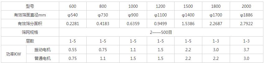 圓形顆粒篩參數: