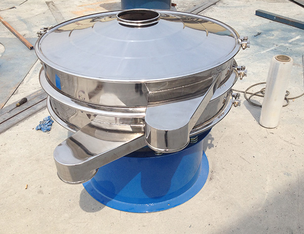 旋振篩起動後,其動力裝置即振動電機上下兩端不同相位的偏心塊、由於(yú)高速放置作用而産生一複合慣性力,該慣性力強迫篩機振動體作複旋運動,篩框在振動力的作用下連續作往複運動,進地而帶動篩面作周期性振動,從而使篩面上的物料随篩箱一同作定向踴躍式運動,其間,小於(yú)篩面孔徑的物料通過篩孔落到下層,成爲篩下物,大於(yú)篩面孔徑的物料經連續跳躍運動後從排料口排出,最終完成篩分工作。旋振篩振動體的運動軌迹爲一複雜的空間三維曲線,此曲線在水平面上的投影爲圓形,在兩垂直面上的投影爲兩相同的橢圓。實際運用中,通過調整振動電機上下兩端偏心塊的相對相位,可以改變(biàn)篩面上物料的運動軌迹,從而達到不同的篩分作業目的。