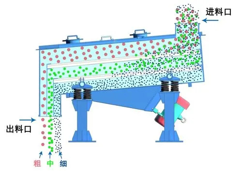直線振動篩:适用於粒度在0.074—5mm,含水量小於7%,無黏性的各種幹式粉狀或顆粒狀物料的篩分(物料必須屬於幹燥狀态)。給料粒度不大於10mm。