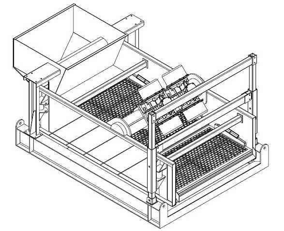 通過提高振動篩指數可有效的從鑽井液中分離出固相顆粒,但同時影響瞭(le)篩網和篩箱以及振動器的壽命,基於(yú)此才設計出瞭(le)平動橢圓振動篩,在平動橢圓振動篩篩箱上,從入口處和出口處的每一點投抛擲指數不斷地減小,而輸沙速度沒有變化,從而提高瞭(le)鑽井液的處理量和分離效果,這就是平動橢圓振動篩的最大優點。