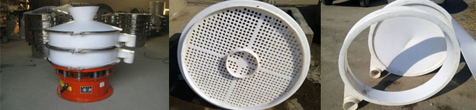 全有廠家生産塑料振動篩是響應化工行業高腐蝕物料篩分求購需求,篩網篩格全部採用聚丙烯材料制作,完全排除瞭一些特殊物料與金屬接觸會産生化學反應的問題。 聚丙烯,是由丙烯聚合而制得的一種熱塑性樹脂,具有強抗腐蝕性物料,解決瞭不鏽鋼、普通鋼材的達不到效果,是強酸、高腐蝕物料佳的選在。