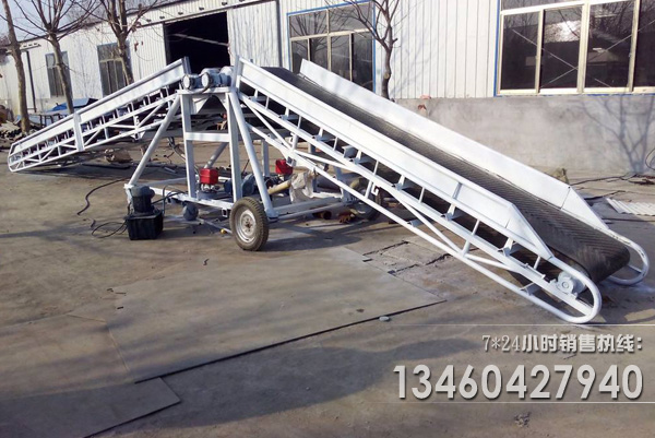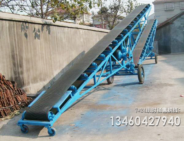 移動式皮帶輸送機也可叫做移動式上料機,移動式裝倉機,移動帶式輸送機主要應用在港口、碼頭、車站、煤場、倉庫、建築工地、砂石料場、農場等場所,用來短途運輸及裝卸散料或單件重100公斤以下的成件物品。移動式皮帶輸送機适用於(yú)散運包裝的糧食或其它小顆粒物料的輸送、裝卸、碼垛、作囤、倒倉(cāng)等倉(cāng)庫的多種作業,能進入庫内使用,也可在露天使用,可由幾台串聯使用,或與其它倉(cāng)庫機械聯合配套使用。