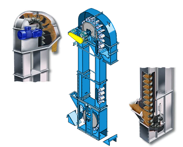 2、上、下部裝配工作情況如何,兩根鏈條的運行速度是否同步,料鬥是否符合要求。